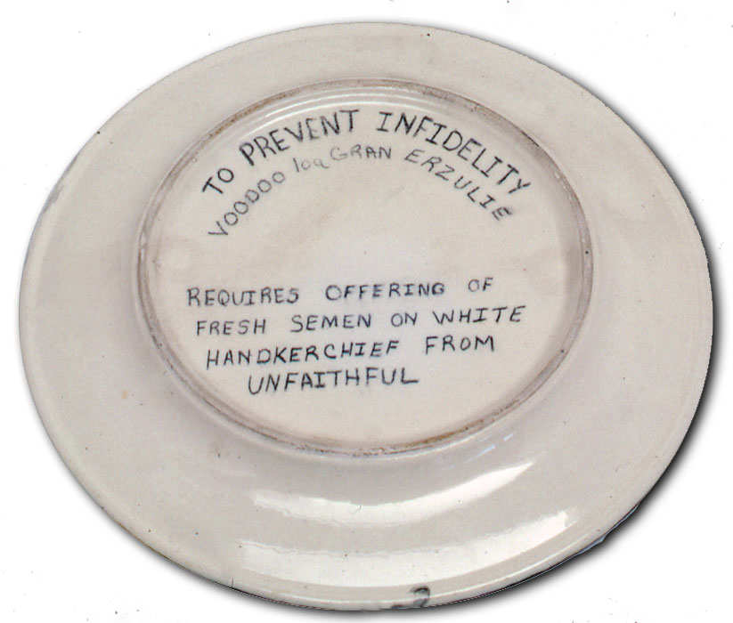 The plate requires an offering of fresh semen on a white handkerchief from the unfaithful.