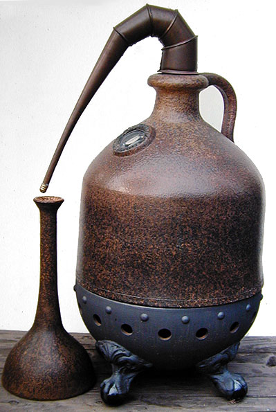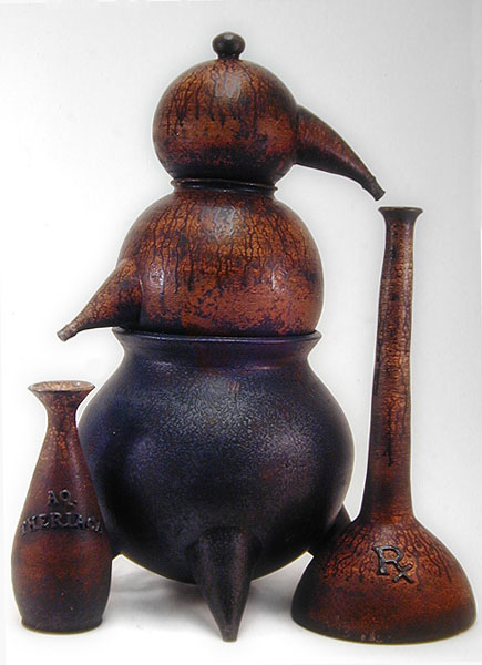 Triple Distillation Apparatus- 1991 40" ht. X 24" X 24" Stoneware ceramic, tobacco spit glaze |
