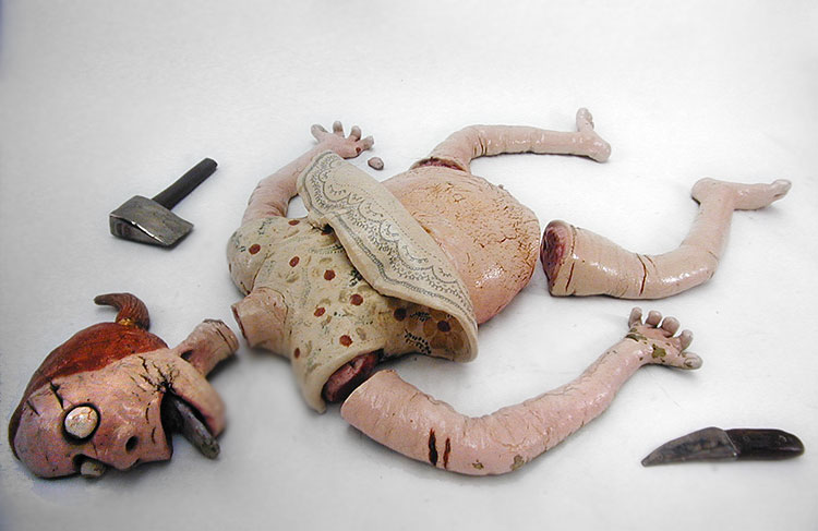 THE MURDER VICTIM- 1973 Low-fire ceramic, china paint, luster
