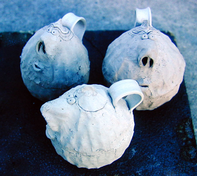 A SET OF NOSE CUPS- 1968 Low-fire whiteware with pink clay noses luster, glass eyes 4" X 3" X 5" |