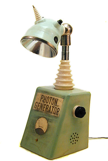 Photon Generator 24" ht. X 12" X 14" Low-fire ceramic, china paint, luster, metal, light |